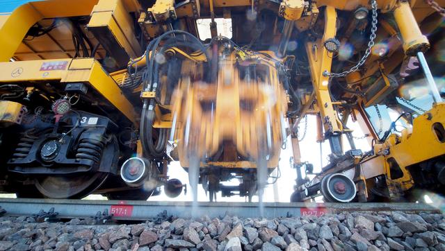 大秦线集中修施工中,养路机械在进行捣固作业。张炯摄