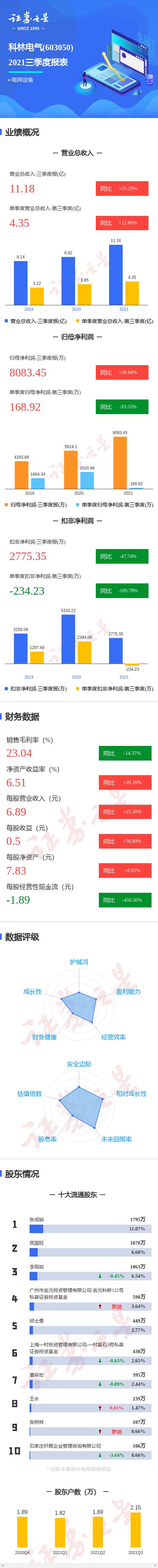 本文摘要:科林电气2021三季报显示,公司主营收入11.19亿元,同比上升25.29%;归母净利润8083.45万元,同比上升36.68%;扣非净利润2775.35万元,同比下降47.74%;其中2021年第三季度,公司单季度主营收入4.35亿元,同… …