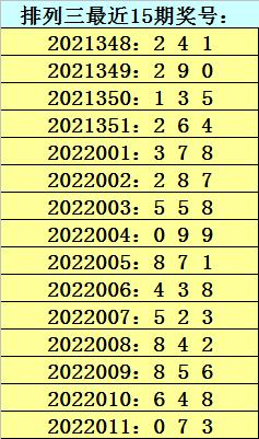 一、体彩排列三第2022011期奖号为073,该号码历史上直选出现了4次,组选出现了28次。