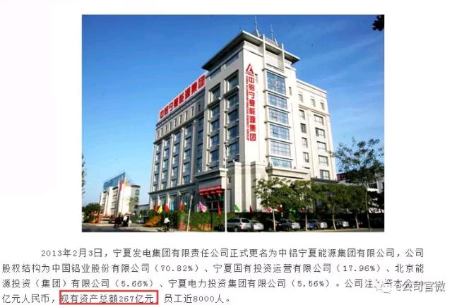 资料显示,中国铝业股份有限公司为央企中国铝业集团旗下企业,目前持有中铝宁夏能源集团有限公司70.82%股权。中铝宁夏能源是中国铝业在西北地区最大的能源平台,中铝世界一流矿业公司的标志性产业示范载体,中铝的煤炭开发基地、电力管理基地和煤电铝一体化基地,公司注册资本金50亿元人民币,现有资产总额267亿元,员工近8000人,分公司9个、子公司22个、参股公司7个。目前,公司已形成火电、风电、太阳能、煤炭、装备制造五大产业板块和火电—煤炭、风力发电—风机制造、太阳能光伏发电—晶体硅制备三条特色产业链。早在2012年,公司建成及在建发电总权益容量已达到5254MW,包括风电、火电、太阳能等各类装机容量。根据规划,到2020年,中铝宁夏能源煤炭产能增长2.4倍,达到1800万吨发电总权益容量达到880万千瓦,其中火电660万千瓦,新能源发电220万千瓦;电解铝产能45万吨。资产总额增长1.9倍,达到500亿元以上;营业收入增长3倍,达到131亿元以上。