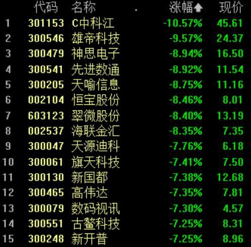 中科江跌超10%,雄帝科技、神思电子、先进数通等跟跌。