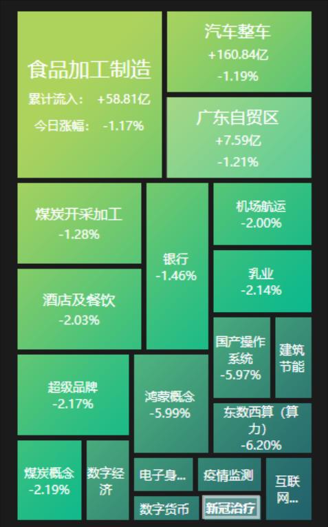 板块方面,两市所有概念板块无一上涨,新冠治疗、互联网电商全天领跌。