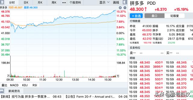 原文标题:拼多多赚了26亿!股价大涨15%,市值增加600亿