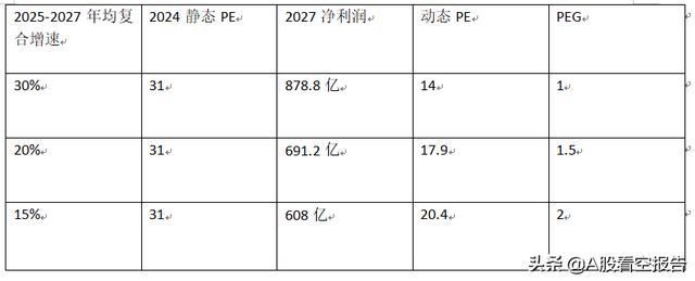 在快速扩张阶段过后,企业的增速难免下滑,假定2024年净利润达到400亿,如果在2025-2027的三年内,增速下滑了,会是什么情况?