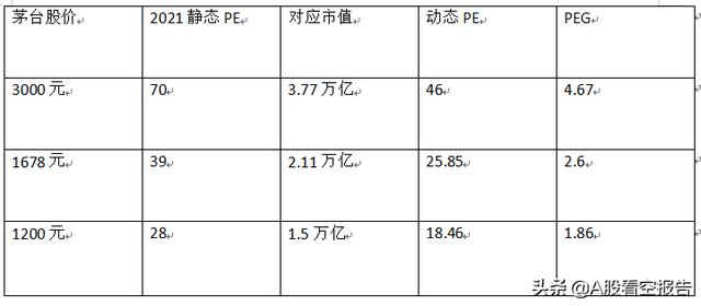 从茅台这家企业来说,不出现大的意外,业绩的增长是有保障的,咱们就按照未来三年年均增速15%来算,去年的净利润是467亿,今年的净利润就是467*1.15=537亿。