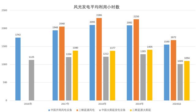 三峡能源2019年风电平均利用小时数2250小时,光伏发电平均利用小时数1405小时。