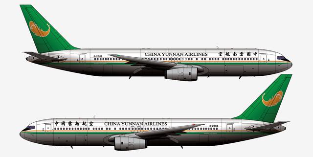 本厂长绘制的东方航空公司云南分公司涂装的波音767-300ER客机二视图