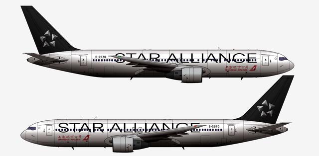本厂长绘制的上海航空公司星空联盟特别涂装的波音767-300客机二视图