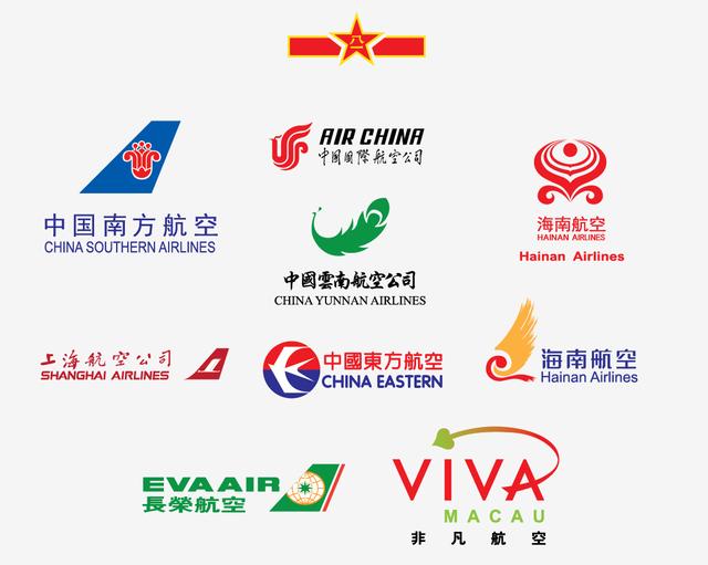 (中国空军,中国南方航空公司、中国国际航空公司、云南航空公司、中国东方航空公司、上海航空公司、海南航空公司、长荣航空公司、非凡航空公司)