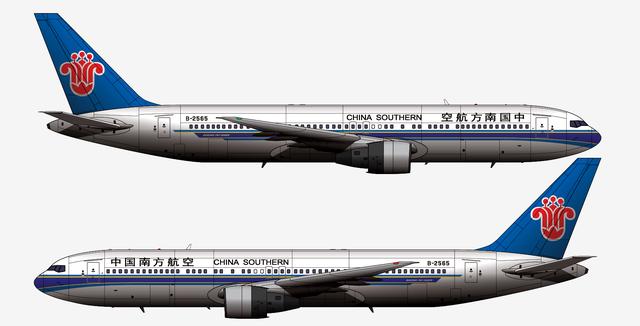 本厂长绘制的中国南方航空公司涂装的波音767-300ER客机二视图