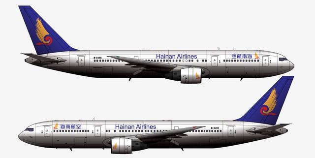 海南省地方所属的国有航空公司:海南航空公司于2002年和2004年分别引进了3架和2架波音767-300ER型客机,2002年引进的3架注册编号为B-2490/B-2491/B-2492;2004年引进的2架注册编号为B-2561/B-2562(其中B-2562来自原上海航空公司),B-2561/B-2562两机于2007年5月退营;B-2490/B-2491/B-2492三机于2018年4月2日全部退营。