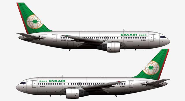 本厂长绘制的长荣航空公司涂装的波音767-200型客机二视图