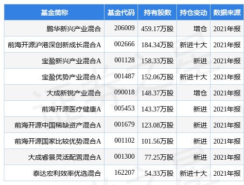 根据2021年报基金重仓股数据,重仓该股的基金共103家,其中持有数量最多的基金为鹏华新兴产业混合。鹏华新兴产业混合目前规模为60.43亿元,最新净值3.19(3月22日),较上一日下跌1.54%,近一年下跌15.88%。该基金现任基金经理为梁浩。梁浩在任的公募基金包括:鹏华研究精选灵活配置混合,管理时间为2017年10月9日至今,期间收益率为121.95%;鹏华科技创新混合,管理时间为2020年1月15日至今,期间收益率为22.79%;鹏华新兴成长混合A,管理时间为2020年7月17日至今,期间收益率为-18.15%。