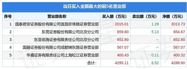本文摘要:沪深交易所2022年5月5日公布的交易公开信息显示,天瑞仪器(300165)因日涨幅达到15%的前5只证券登上龙虎榜。此次是近5个交易日内第1次上榜。截至2022年5月5日收盘,天瑞仪器(300165)报收于5.44元,上涨20.09%,涨… …