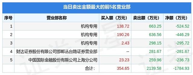 从龙虎榜公布的当日买卖数据来看,机构合计净卖出1266.53万元。著名刺客、炒股养家等知名游资榜上有名。