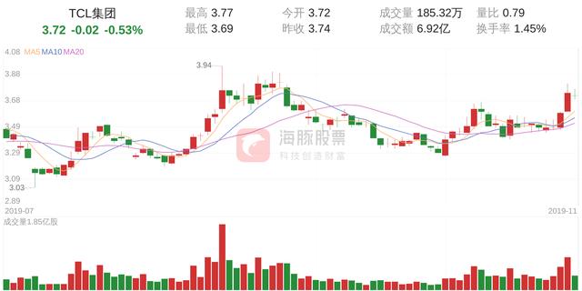 TCL集团今日下跌0.53%,股价为3.72元,成交金额为6.92亿元,成交185万手,换手率为1.45%。