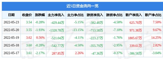 资金流向数据方面,5月23日主力资金净流出429.44万元,游资资金净流出382.48万元,散户资金净流入625.7万元。