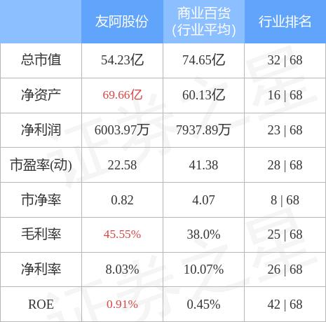 友阿股份主要指标及行业内排名如下: