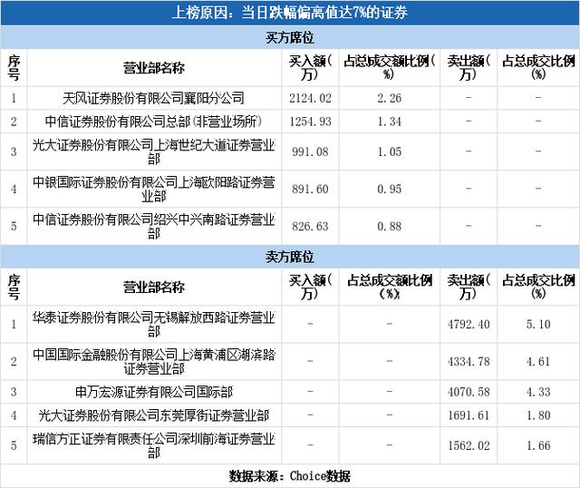原文标题:实力营业部现身龙虎榜,航天机电跌停(07-23)