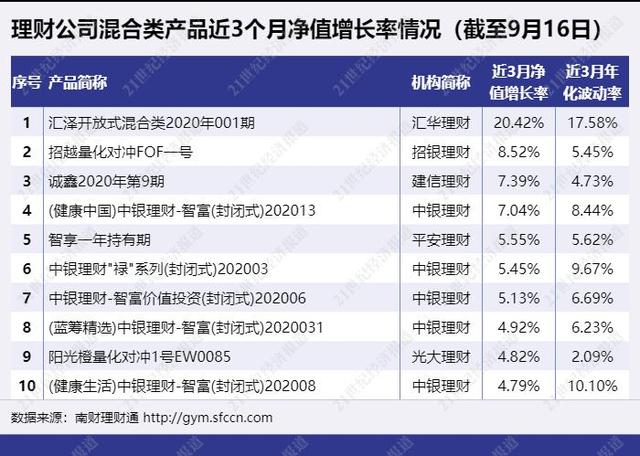 近3月净值增长率超20%,汇华理财“汇泽”系列领跑理财子混合类产品榜单丨机警理财日报(9月16日)