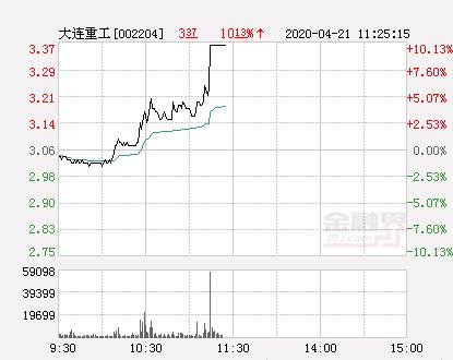 金融界网站4月21日讯 今日大连重工开盘报3.04元,截止11:20分,该股涨10.13%报3.37元,封上涨停板。