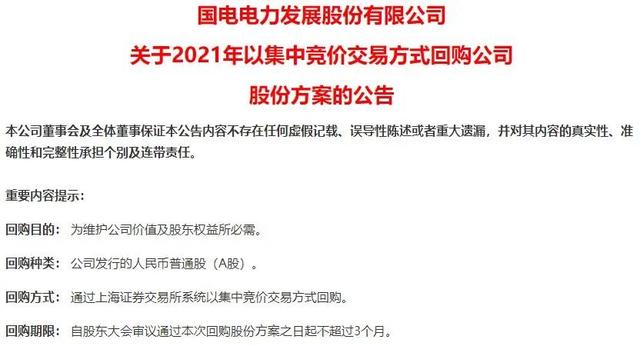 在2020年7月22日至9月22日期间,国电电力也曾进行了大手笔回购,回购金额达12亿元,其间国电电力的股价涨幅为5.47%。