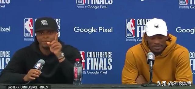 赛后发布会上,巴特勒和洛瑞一起出席,记者问洛瑞,“凯尔,当你听到巴特勒打得不错时做了个鬼脸,你怎么形容JB的比赛?”