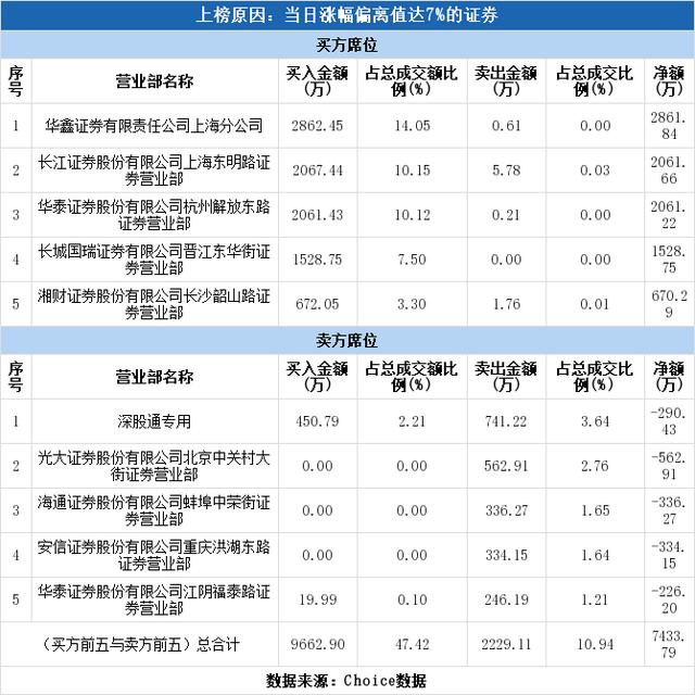 今日榜单上出现了一家实力营业部。买一为华鑫证券股份上海分公司,该席位买入2862.45万元,卖出6144元,净买额为2861.84万元。近三个月内该席位共上榜509次,实力排名第7。华鑫证券股份上海分公司今日还参与了大洋电机(净买额-4664.94万元),长源电力(净买额3692.73万元),海兰信(净买额1850.70万元)等11只个股。
