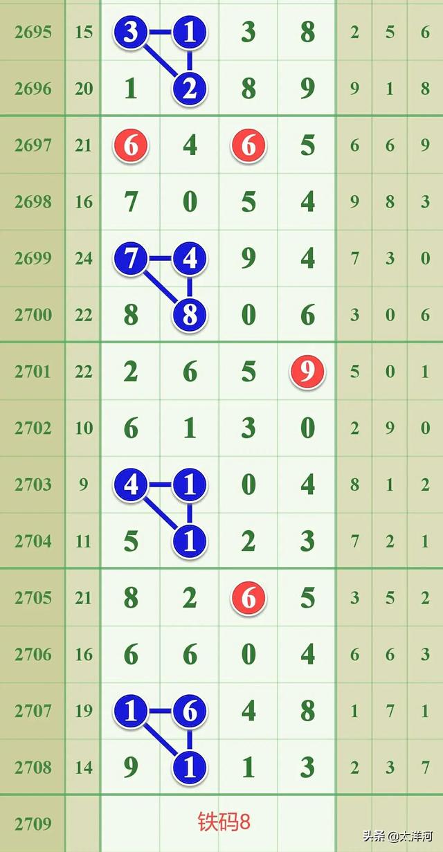 本文摘要:铁码:6本期看好数字6下号,符合条件的组合可以优先考虑使用数字6组合配对。铁码:8本期看好数字8下号,符合条件的组合可以优先考虑使用数字8组合配对。十位16符合条件的组合可以优先考虑使用16组合下号。十个位差分,符合条件的组合如下所列:XX… …