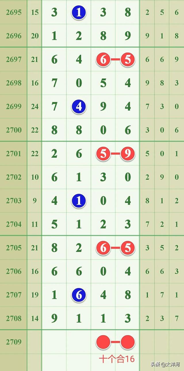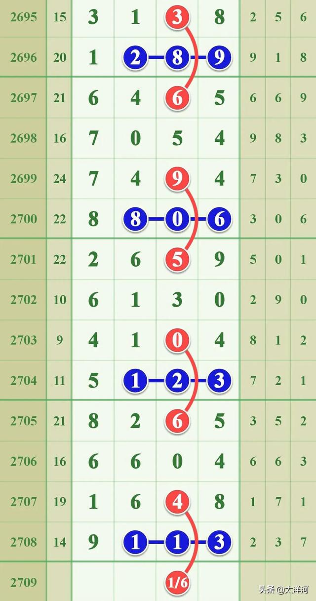 本期看好数字6下号,符合条件的组合可以优先考虑使用数字6组合配对。