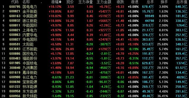 绿色电力延续昨日强势,但出现明显分化。早盘板块涨幅超过4%,截至收盘涨幅回落至3%。国电电力(600795)、中闽能源(600163)、浙江新能(600032)、华能国际(600011)、上海电力(600021)涨停,且大多为连板。但与此同时亦有多股翻绿。