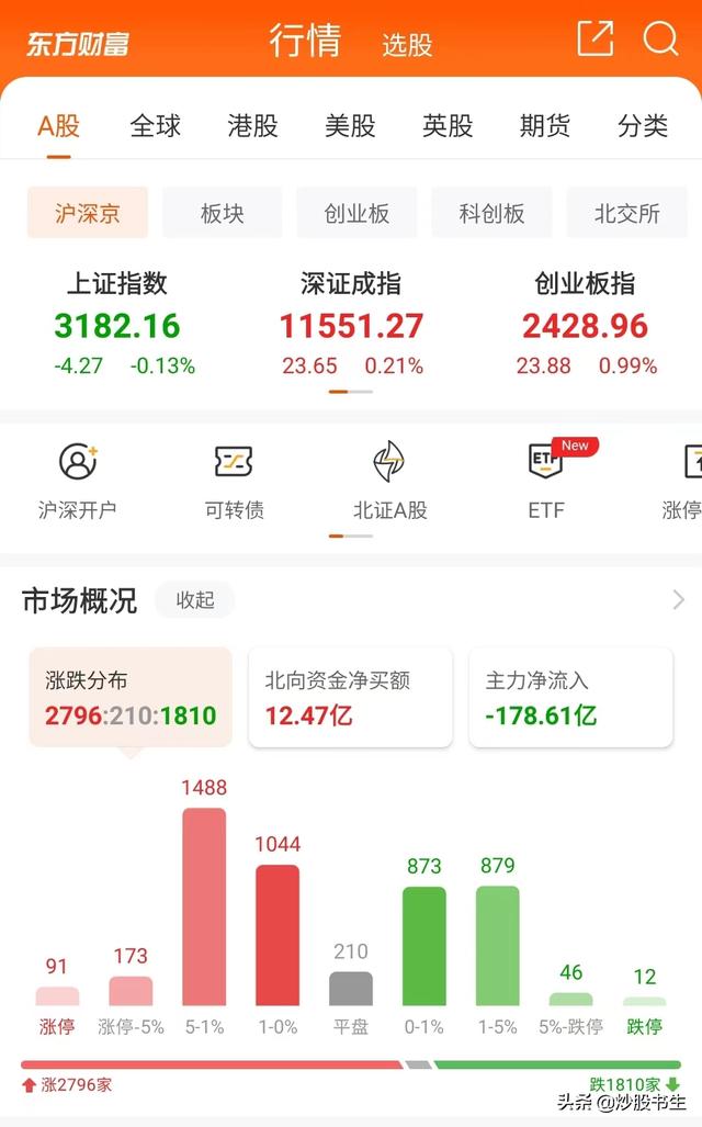 两市收涨2796只,收跌1810只,赚钱效应很一般。