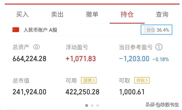 账户浮盈:账户三成半仓,收市浮亏1200多。勉强可以接受。