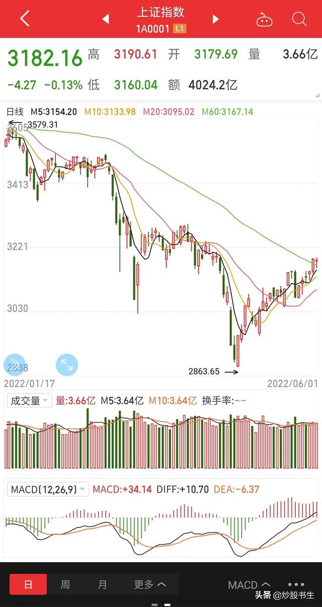 关于大盘技术面的分析:上证指数今天已经突破了水平阻力线,但上方有斜通道上轨压制,叠加60日均线(季线)压制,所以未能继续走强。明天是端午节前的最后一个交易日,我已经躺平了。节后再重新布局吧,看样子3200点是突破不了的。