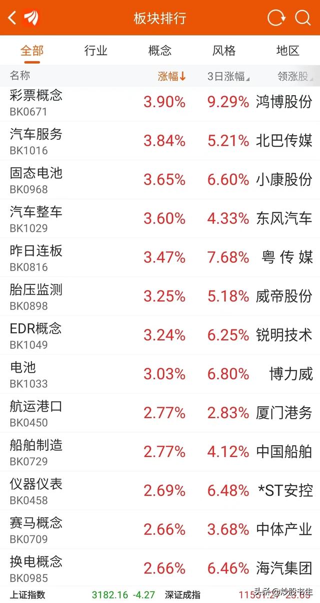 行业板块上:彩票、汽车、锂电、航运港口等板块涨幅居前;