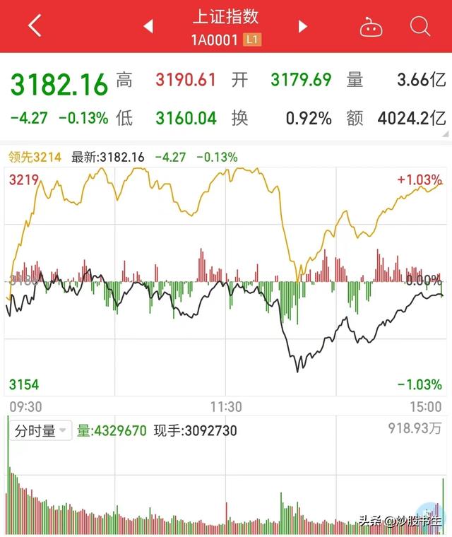 从分时图中可以很明显地看出,大A今天是震荡走势,午后开启a浪的下跌,建议明早冲高减仓。