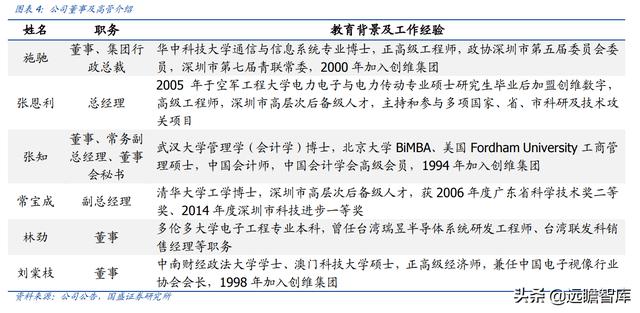 公司董事兼集团行政总裁施驰先生拥有华中科技大学通信与信息系统专业博士学位,专业知识扎实的同时,也曾担任政协深圳市第五届委员会委员、深圳市第七届青联常委等。部分董事及高管在 2000 年及以前即已加入创维集团,熟稔业务及管理,长期陪伴公司成长,有助于公司战略制定及执行。