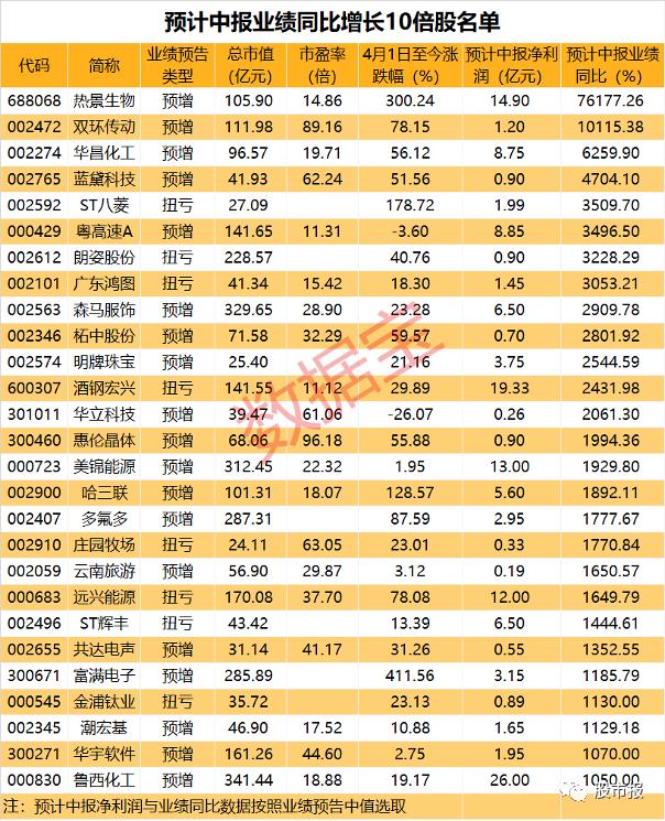 27股中报预增超10倍