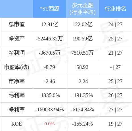 *ST西源主要指标及行业内排名如下: