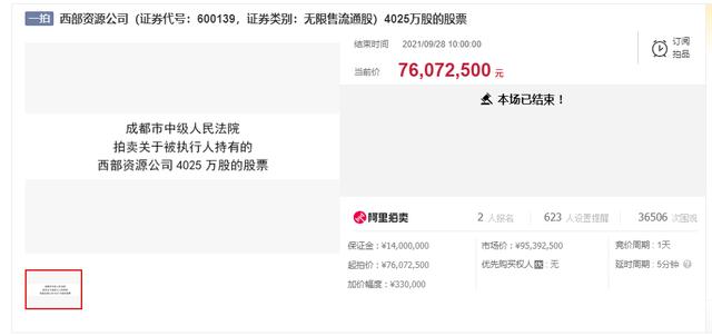本文摘要:2021年9月27日10时至9月28日10时止,四川省成都市中级人民法院在淘宝网司法拍卖网络平台,对四川恒康发展有限责任公司(四川恒康)持有的四川西部资源控股股份有限公司西部资源公司(ST西源600139ST)4025万A股,公开拍卖。共有… …