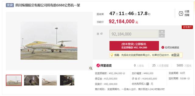 如今进入变卖阶段(即第三次拍卖),今年11月15日结束,其中G550公务机变卖价9218.4万元,G450变卖价5612.8万元。