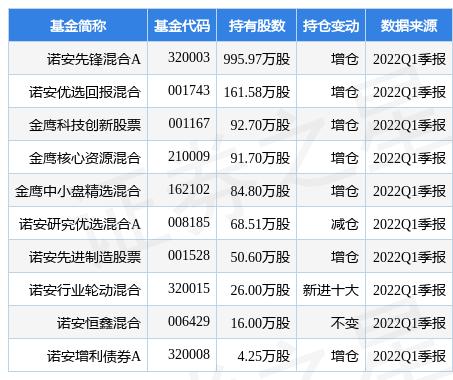 其中持有数量最多的基金为诺安先锋混合A,目前规模为43.31亿元,最新净值2.4401(5月27日),较上一交易日下跌0.04%,近一年下跌0.96%。该基金现任基金经理为杨谷 张堃。