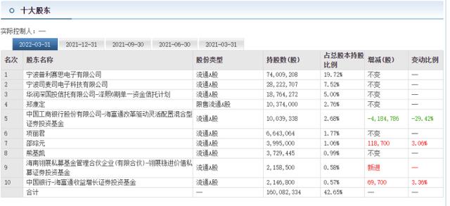 而作为康强电子创始人的郑康定目前持有公司2.76%的股份,是公司第四大股东,但实际上还是郑康定的女儿郑芳负责日常经营。