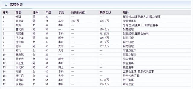 而公司的荣誉董事长郑康定今年已经74岁,是公司创始人,前段时间他被聘任为公司荣誉董事长时正式退出公司管理层。
