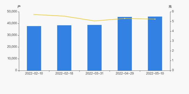 2022年2月10日至今,公司股东户数显著增长,区间涨幅为21.43%。2022年2月10日至2022年5月10日区间股价下降8.22%。