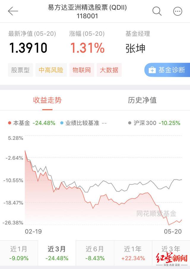 相比之下,其他明星基金经理大多数仍保持高仓运作,甚至不乏90%以上的重仓。如“基金一哥”易方达张坤管理的多只基金,一季度末仓位均在92%-94%区间,堪称极重仓,这也导致了张坤的业绩起伏更大,其管理的拳头基金易方达蓝筹精选混合(005827)近三月跌幅15.05%;以港股为主的易方达亚洲精选(118001)近三月跌幅更是达24.48%。