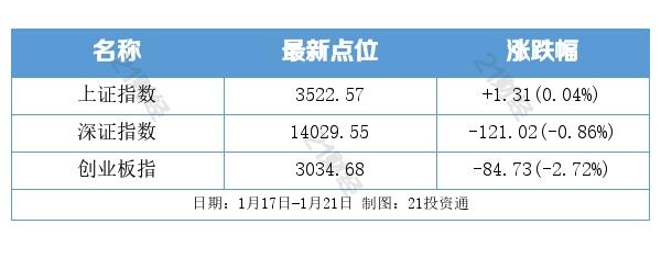 过去一周,三大指数高开低走,创业板指当周4连阴后创调整新低,周跌2.72%。