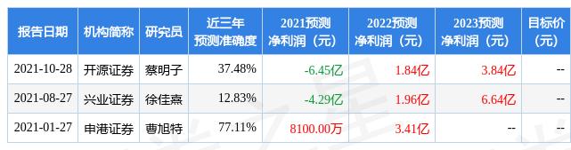 证券之星数据中心根据近三年发布的研报数据计算,申港证券曹旭特研究员团队对该股研究较为深入,近三年预测准确度均值为77.11%,其预测2021年度归属净利润为盈利8100万,根据现价换算的预测PE为0。