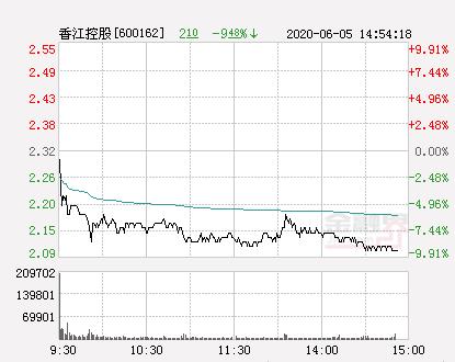 金融界网站6月5日讯 今日香江控股开盘报2.3元,截止14:45分,该股跌9.91%报2.09元,封上跌停板。