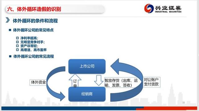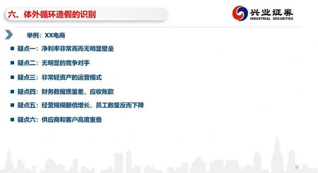 在“体外循环造假的识别”这一项里,王姓分析师举例了“XX电商”作为反面教材。